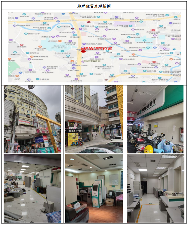 標(biāo)的位于貴陽市云巖區(qū)香獅路198、196號新里程商城1號樓F1層203號;該標(biāo)的分攤土地使用權(quán)面積:98.51㎡ ,總建筑面積:285.72㎡,樓宇總層數(shù):9層,所在樓層:1層,地類用途:商業(yè)用地;土地使用權(quán)類型為出讓,土地使用權(quán)終止日期為:2053年10月23日,土地所有權(quán)為國家所有;建筑結(jié)構(gòu):混合結(jié)構(gòu);層高:3.3米,建筑用途為商住。