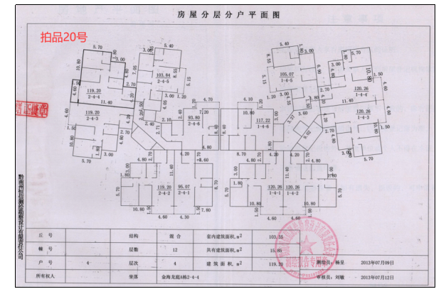 1.標(biāo)的位于獨(dú)山縣百泉鎮(zhèn)虹橋路金海龍庭A棟2單元,于2013年建成,建筑面積均為119.2㎡(套內(nèi)面積103.35㎡),建筑物外墻刷墻漆,室內(nèi)客廳鋪地磚,墻面刷白漆,臥室鋪木地板,廚房衛(wèi)生間地面鋪地磚,安裝鋁合金窗,木包門。臨近古鳳博物館,小上海花園,生活配套設(shè)施齊全,交通通達(dá)度較好,有多條公交及出租車通達(dá),供電、供水、排水、通訊均能滿足使用要求。其中拍品19號(hào)不動(dòng)產(chǎn)權(quán)證號(hào):獨(dú)房權(quán)證獨(dú)山字第2015008號(hào);拍品20號(hào)不動(dòng)產(chǎn)權(quán)證號(hào):獨(dú)房權(quán)證獨(dú)山字第2015009號(hào);拍品21號(hào)不動(dòng)產(chǎn)權(quán)證號(hào):獨(dú)房權(quán)證獨(dú)山字第2015007號(hào)。