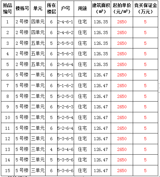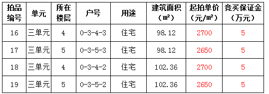拍品16-19號(hào) 鳳岡縣一中門(mén)口城北安置房4套