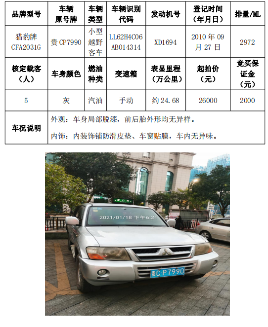 拍品編號5:獵豹牌CFA2031G小型越野客車一輛