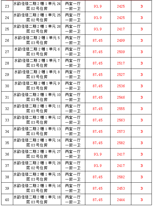 2、水韻佳緣82套住宅房產(chǎn),建筑面積:87.45—128.24㎡,起拍價(jià):2373—2582元/㎡;