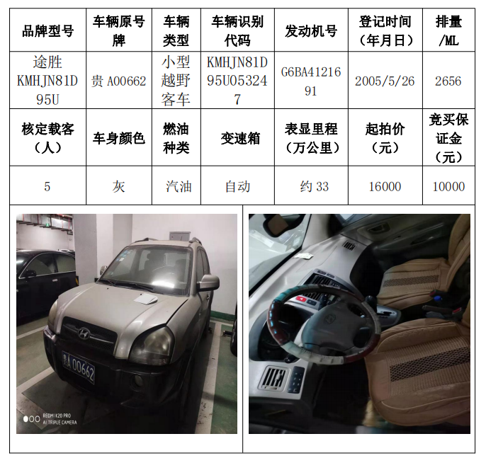 拍品編號4:途勝KMHJN81D95U小型越野客車一輛