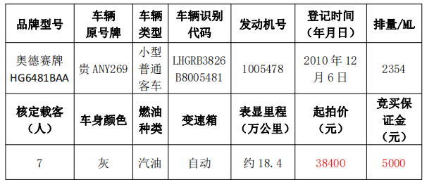 輝騰轎車1輛、雅閣轎車1輛、別克小型客車1輛、途勝越野車1輛、長城牌小型越野客車1輛、雪佛蘭小型客車1輛、本田奧德賽小型普通客車1輛,共計7輛車。