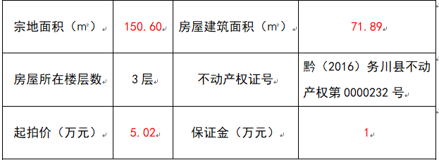 標(biāo)的二:遵義市務(wù)川縣豐樂鎮(zhèn)豐樂村豐樂老街場上(農(nóng)行營業(yè)所)3-2號的住宅房地產(chǎn)