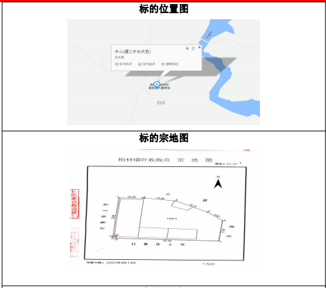 該標(biāo)的位于余慶縣敖溪鎮(zhèn)柏林村村委會(huì)旁,標(biāo)的上無建筑,該標(biāo)的以圍墻為界,標(biāo)的位置在村寨邊緣,證載土地面積:約1326.3㎡,土地使用權(quán)性質(zhì):劃拔,土地證載用途:煙葉收購,土地證號(hào):余國用(2007)第897號(hào)。