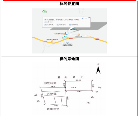該標(biāo)的位于余慶縣大烏江鎮(zhèn)箐口中街,證載土地面積:約524.9㎡,證載獨(dú)用面積:437.22平方米,土地使用權(quán)性質(zhì):劃拔,土地證載用途:煙葉倉儲(chǔ),土地證號(hào):余國用(2008)第582。