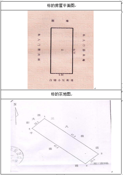 該標的位于遵義市播州區(qū)南白鎮(zhèn)白錦小區(qū)二期三段,南面臨白錦小區(qū)街道,其余三面臨其他物業(yè)地塊,房屋總層數(shù)為9層,該標的所在層數(shù)為1層,證載房屋建筑面積為57.31㎡,標的規(guī)劃用途為為營業(yè),房屋建筑結構為混合,房屋所有權證號:遵房權證遵義縣字第200905595號。