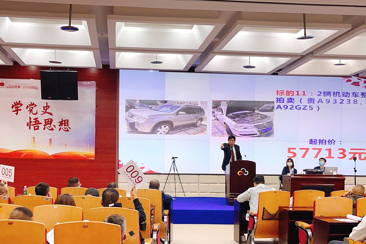 接手車輛處置工作后,翔泓拍賣公司首先與貴州省公共資源交易中心有關(guān)部門對接聯(lián)系工作,由于省交易中心多年沒有拍賣企業(yè)進場交易,貴州省公共資源交易云未設(shè)置拍賣企業(yè)的項目入場通道,翔泓拍賣公司積極與省交易中心及技術(shù)服務(wù)提供商聯(lián)系溝通,反復交流,完善入場登記所需資料,最終確定可以進場交易并完成項目入場登記,敲定相關(guān)流程,使用省交易中心多功能廳為拍賣會場地。