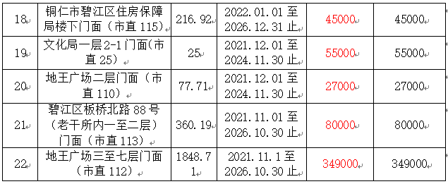 8、碧江區(qū)住房保障局樓下門面1間,面積:216.92㎡,租賃期:5年;