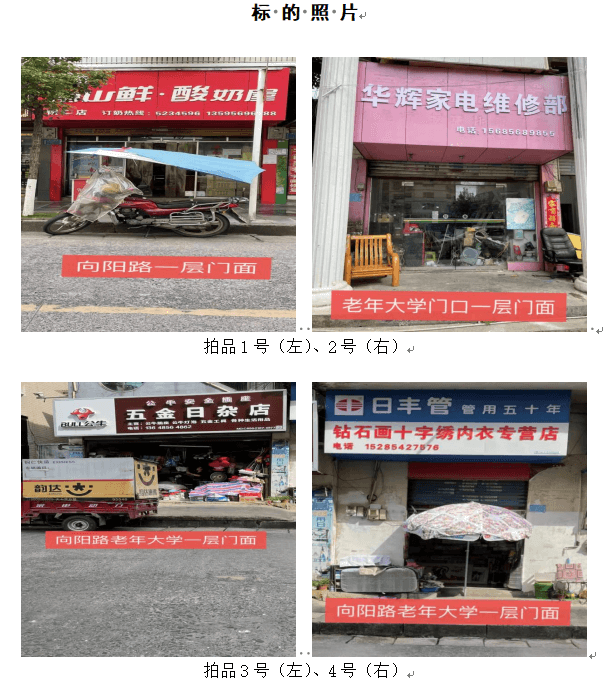 1、向陽路老年大小門面6間,面積10—18㎡,租賃期3年;