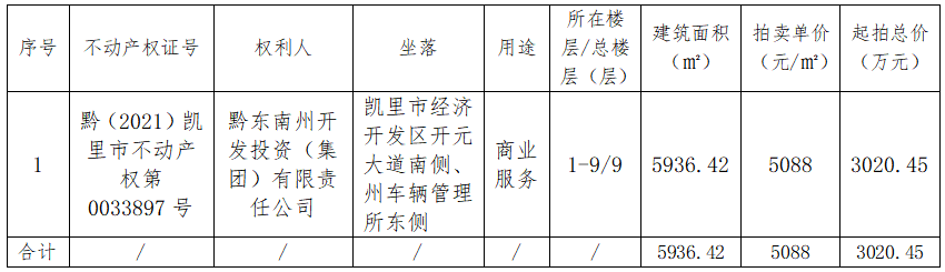 受黔東南州開(kāi)發(fā)投資(集團(tuán))有限責(zé)任公司委托,我公司定于2022年01月06日(星期四)下午14:30時(shí)在黔東南州公共資源交易中心多功能廳公開(kāi)拍賣以下標(biāo)的: