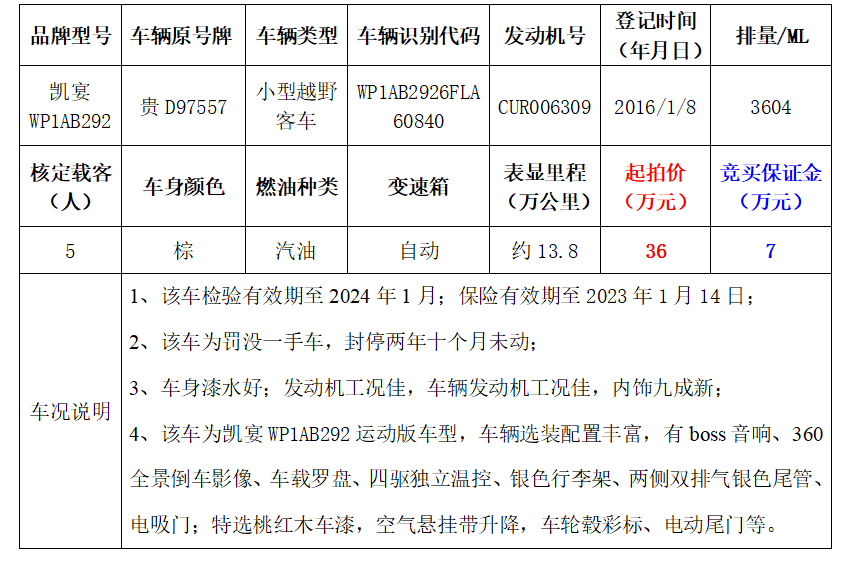 拍品名稱:凱宴WP1AB292小型越野客車一輛